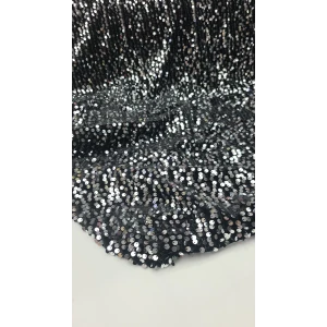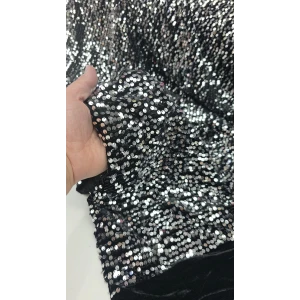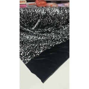 Siyah Kumaş Üzerine Gümüş Pul Payet İthal Kadife