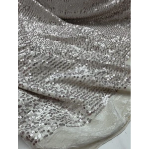 Ecru Kumaş Üzerine Ecru Pul Payet İthal Kadife