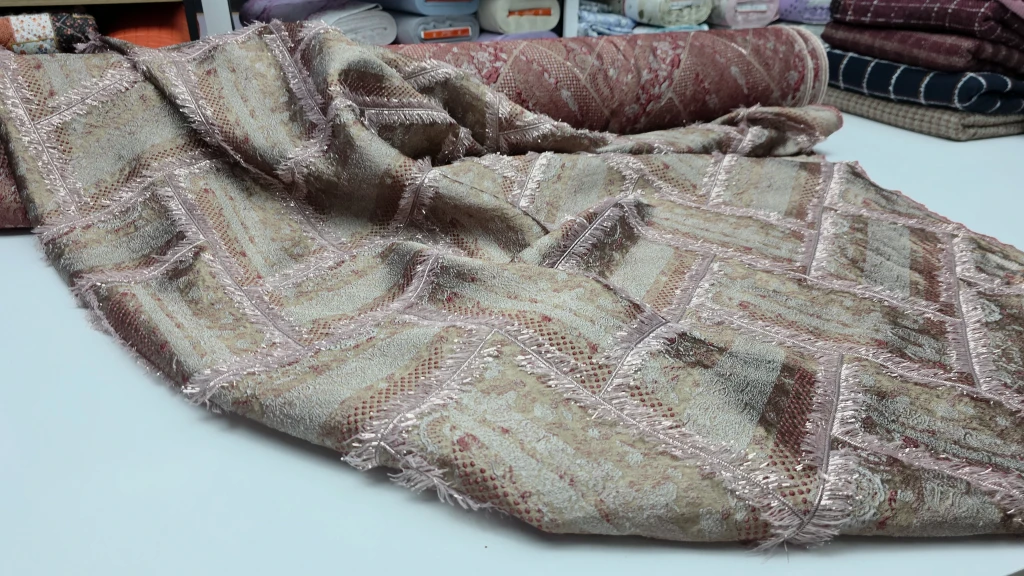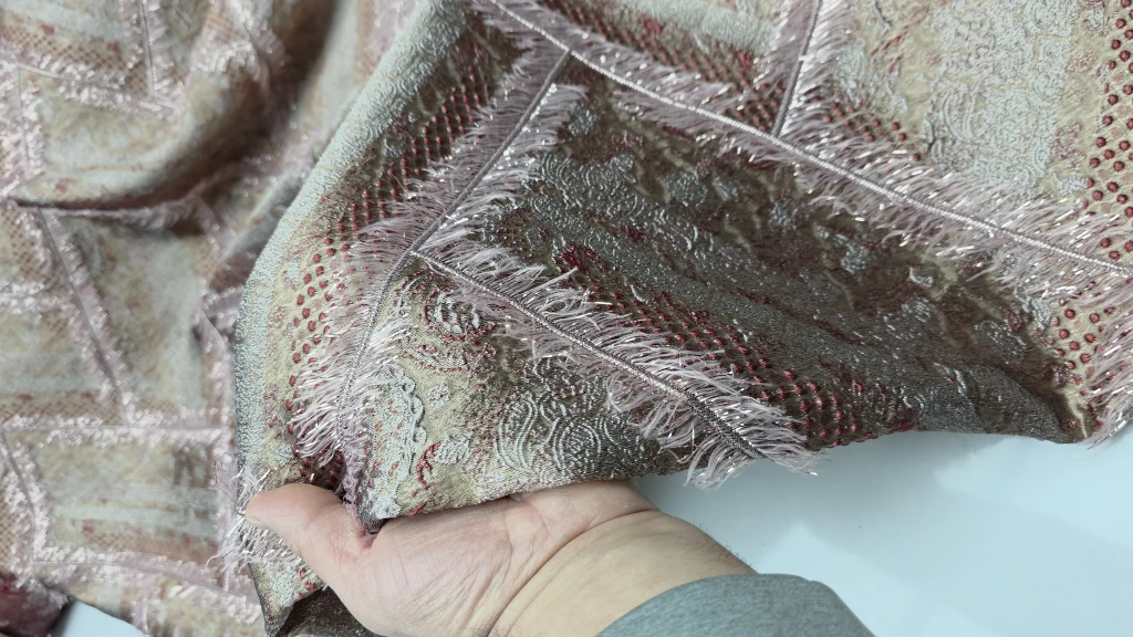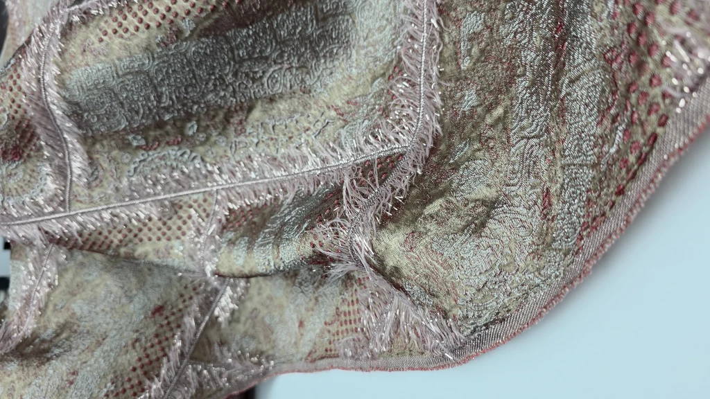 Muhteşem Kabartma ve Desen: Yüksek kaliteli Brokar Jakar dokumasıyla, kumaşın üzerindeki zengin kabartma ve desen detayları, her parçaya lüks bir derinlik katıyor.