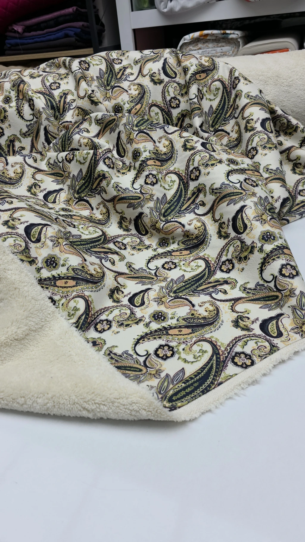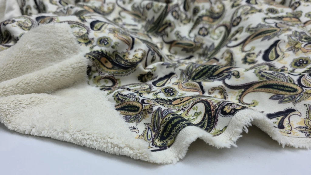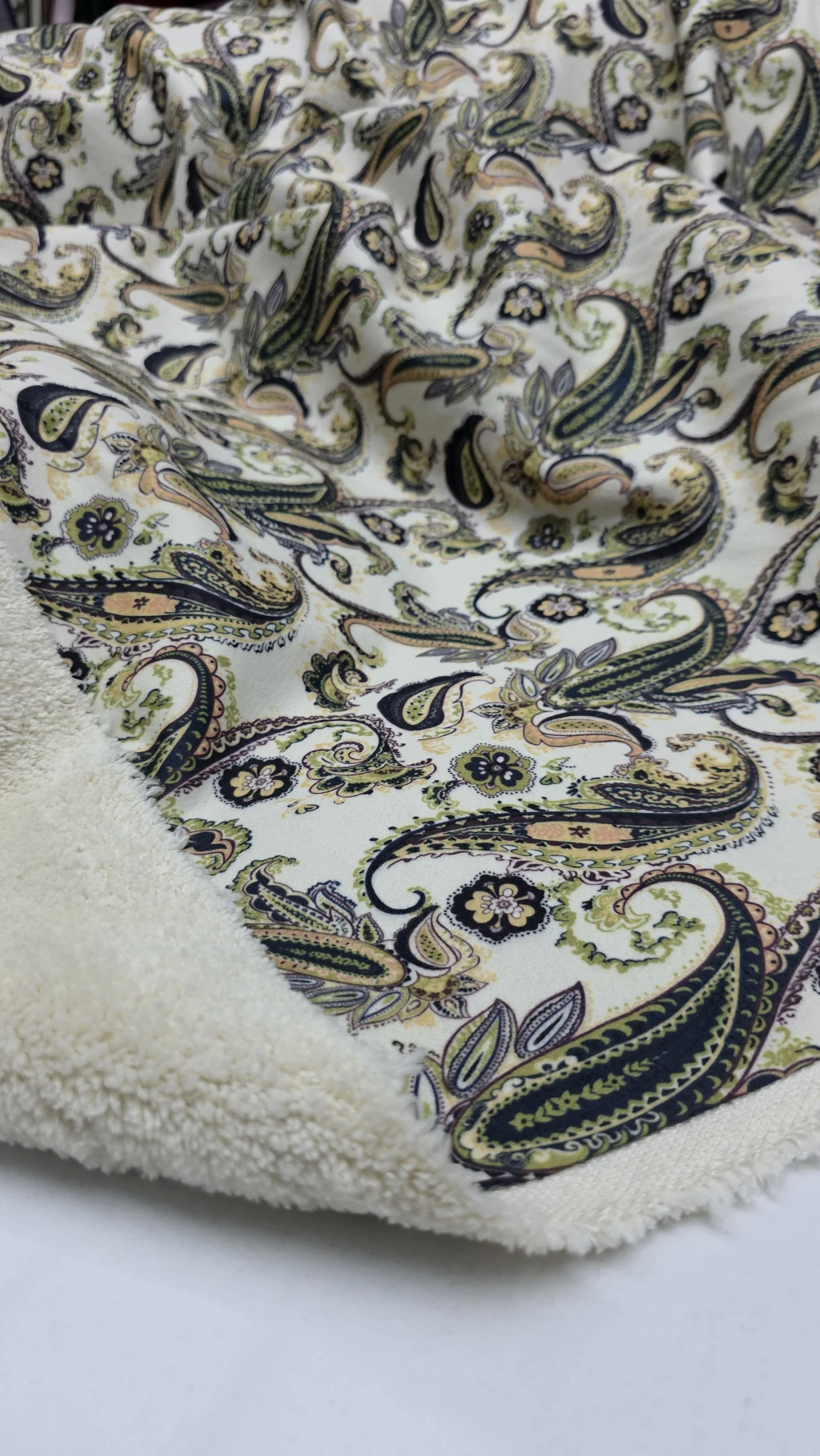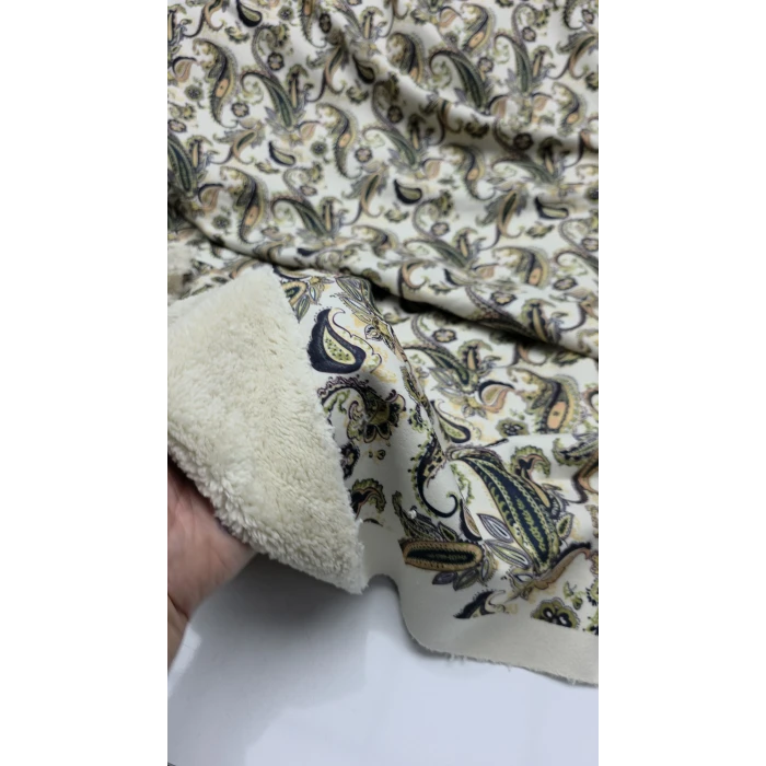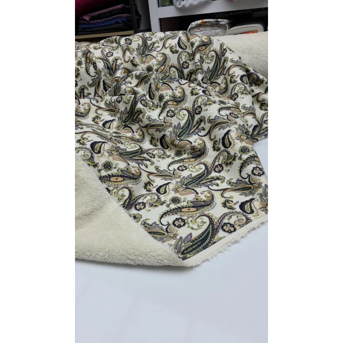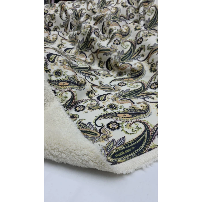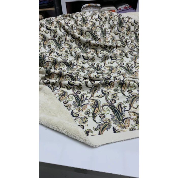 İki muhteşem doku tek bir kumaşta buluştu! Bir yüzü yumuşacık, sıcacık tutan Kuzu Welsoft, diğer yüzü ise dijital baskılı, göz alıcı Süet.