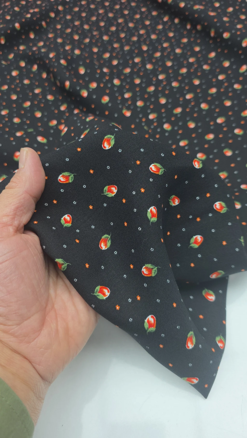 GÜL-AKASYA Organik Viskon. Zemini Simsiyah Beyaz Akasya