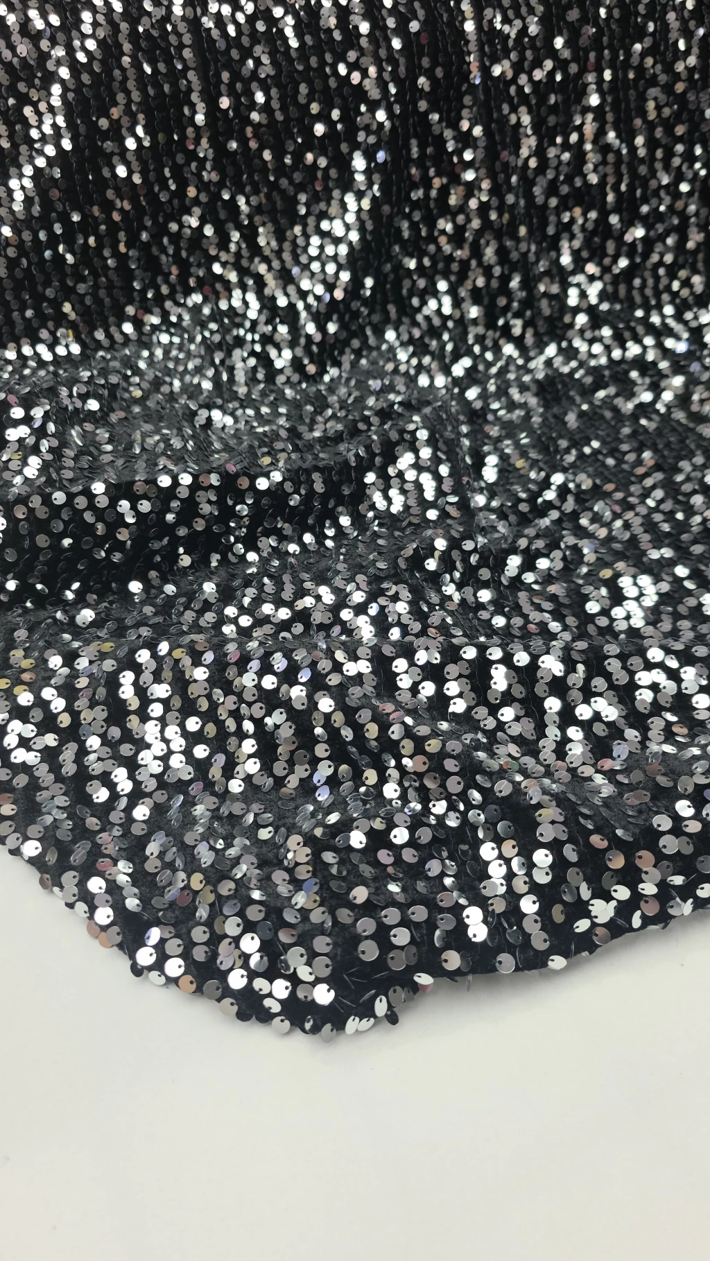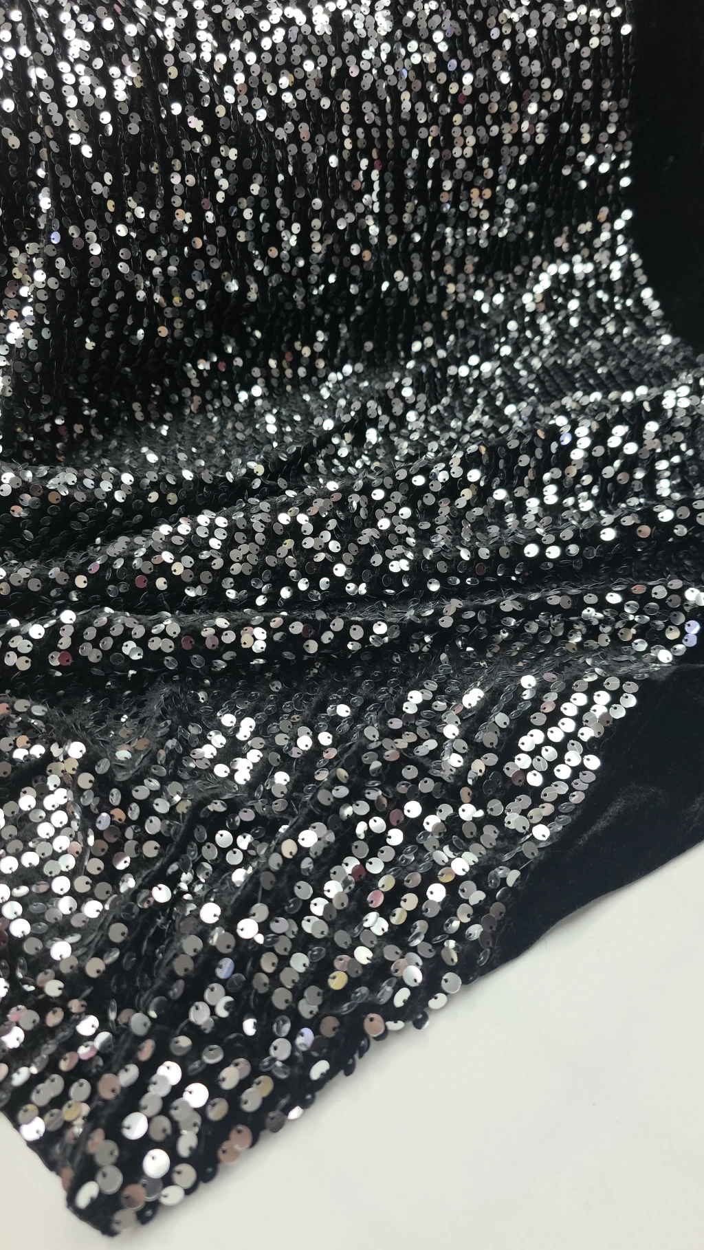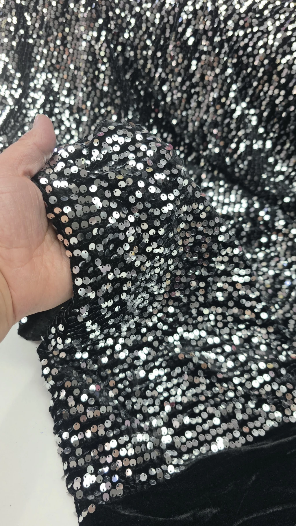 Siyah Kumaş Üzerine Gümüş Pul Payet İthal Kadife