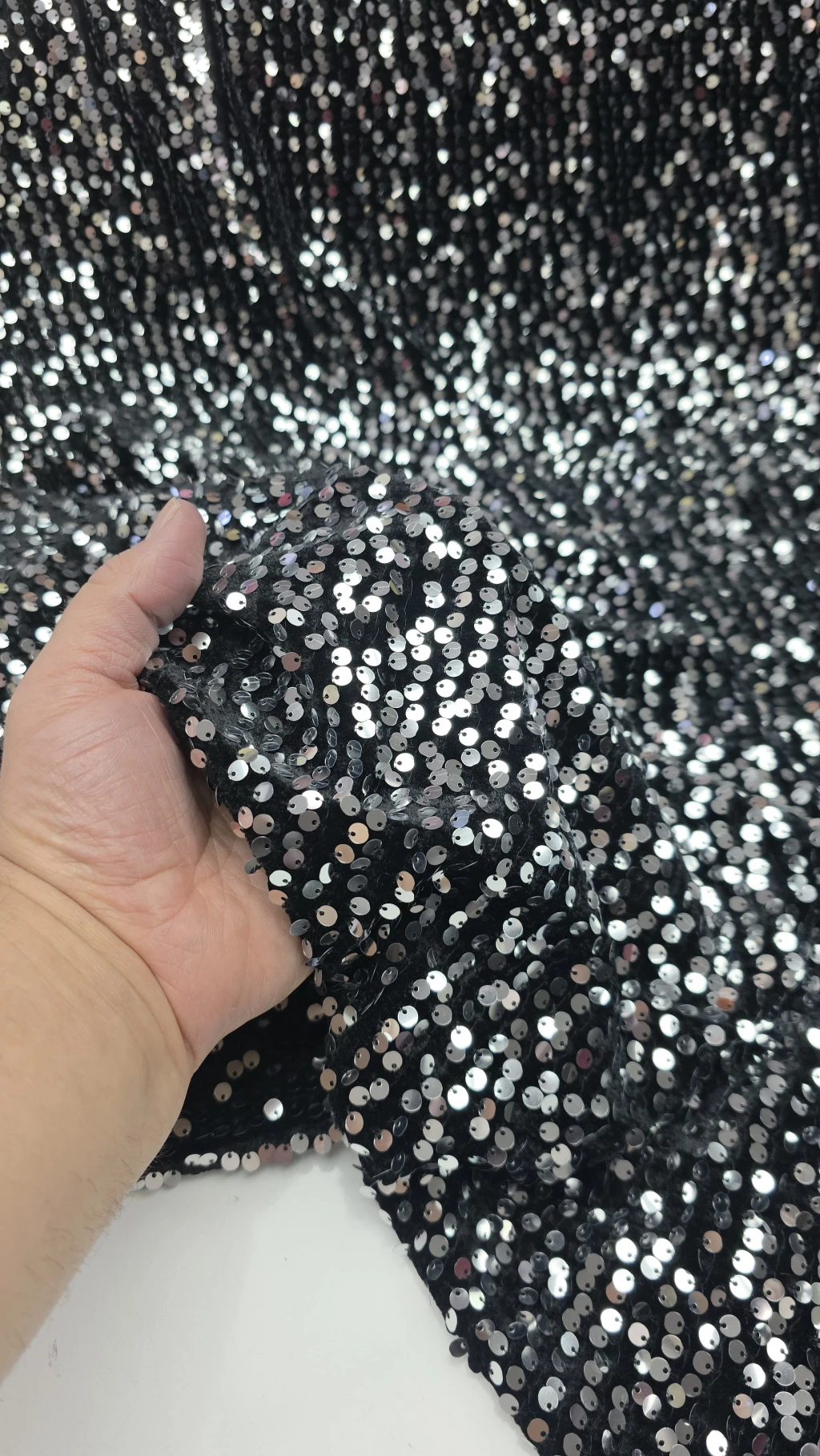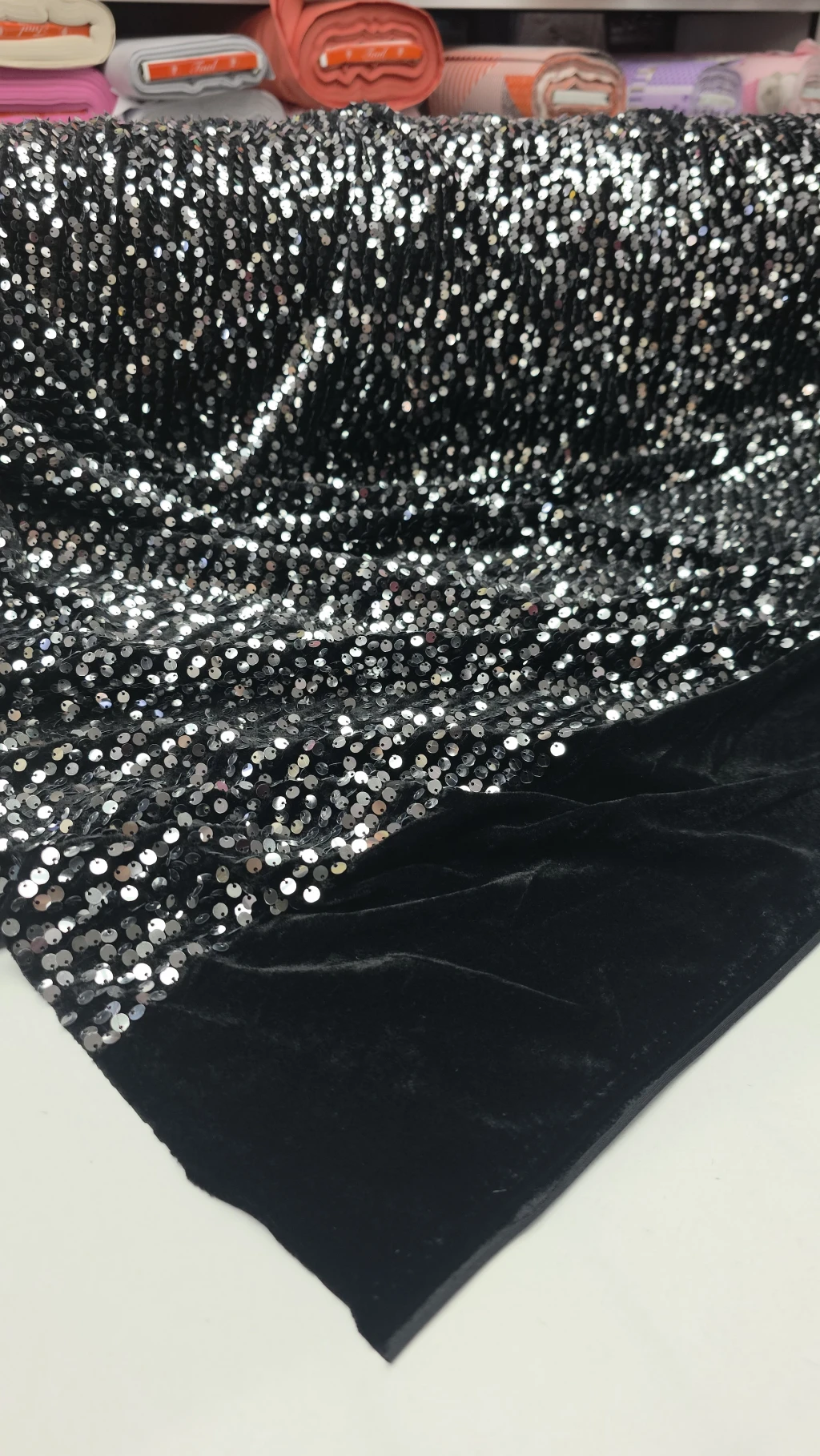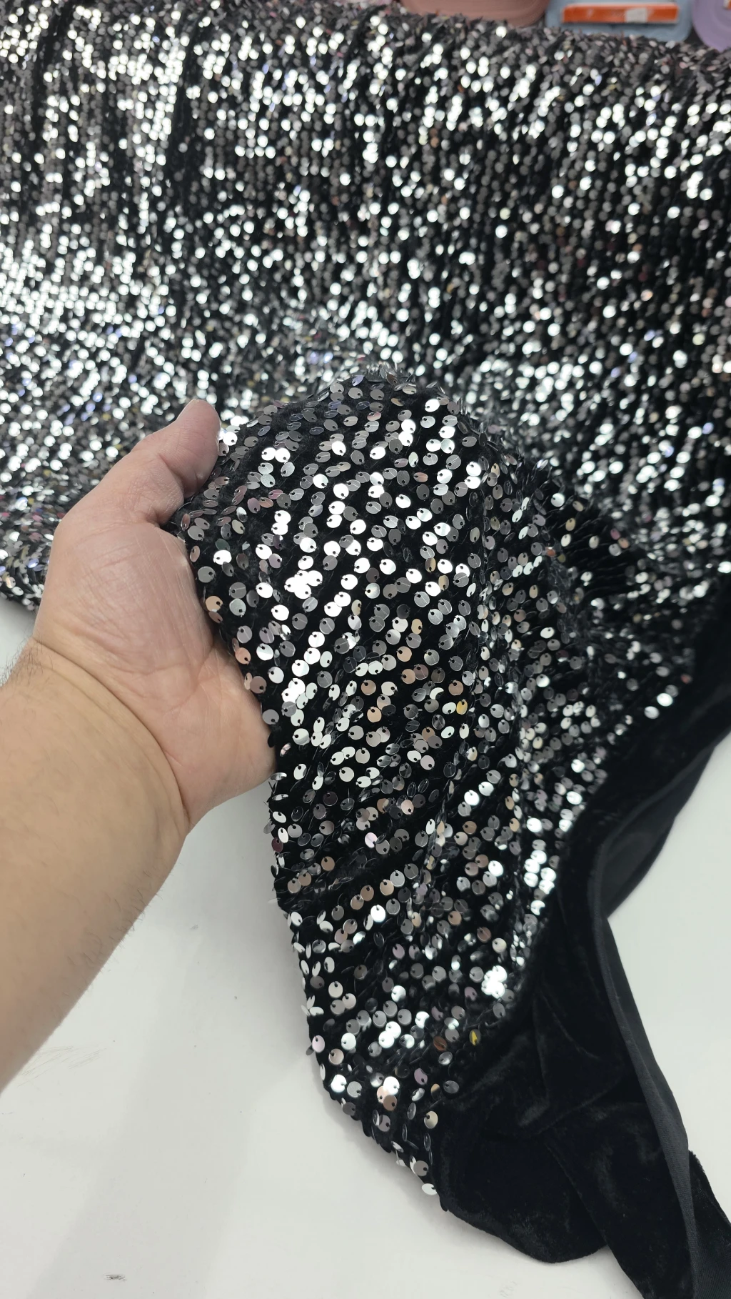 Siyah Kumaş Üzerine Gümüş Pul Payet İthal Kadife
