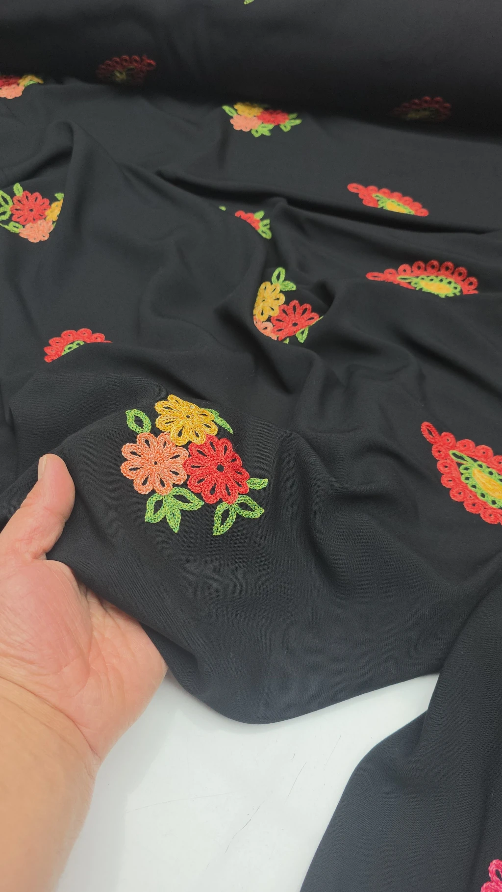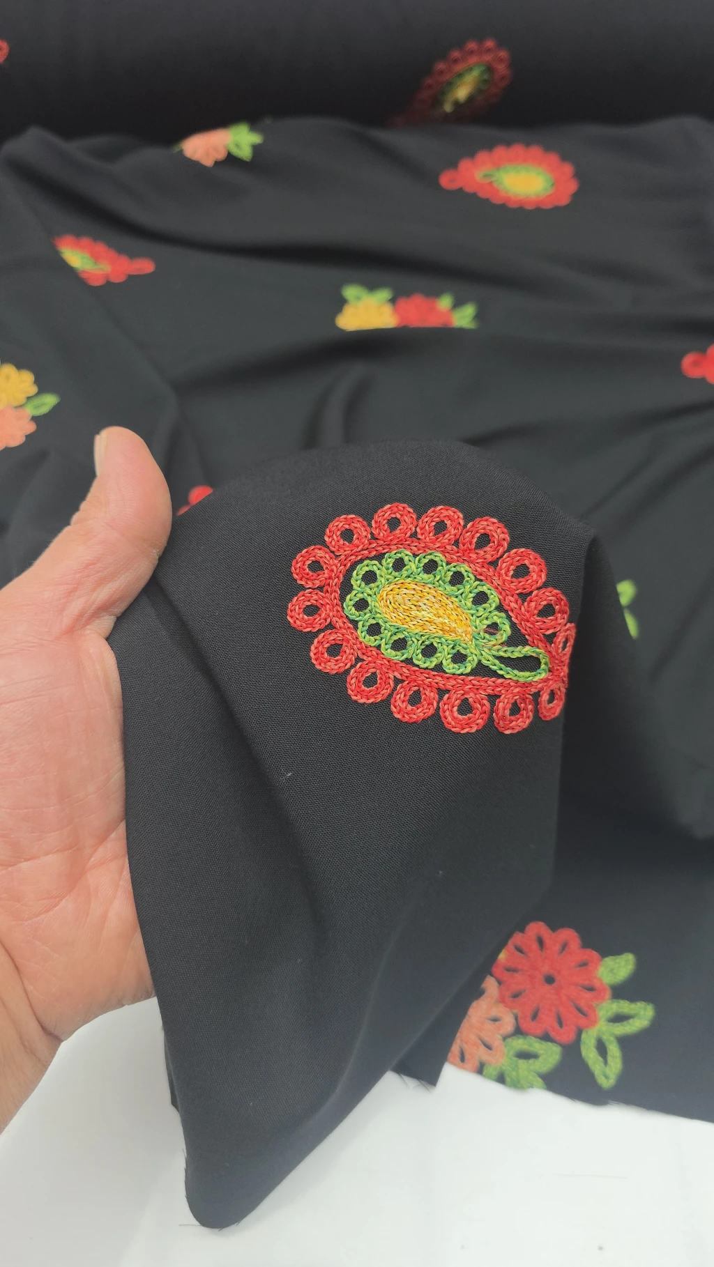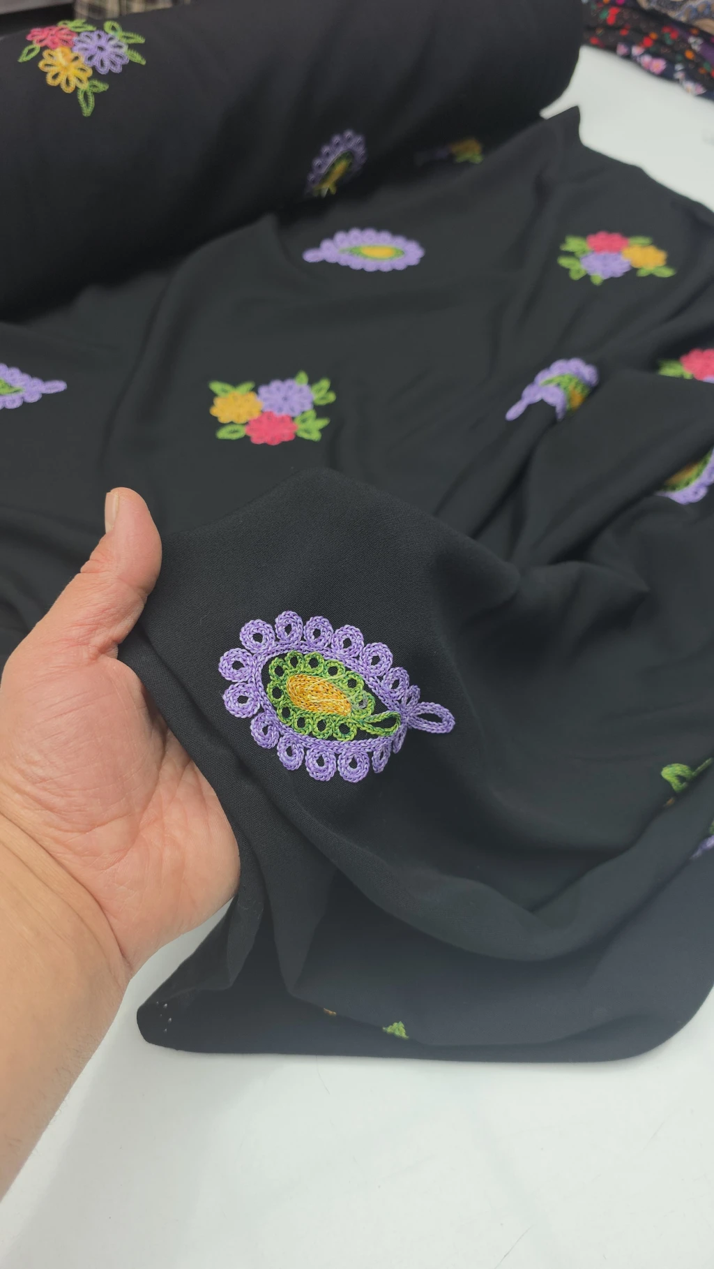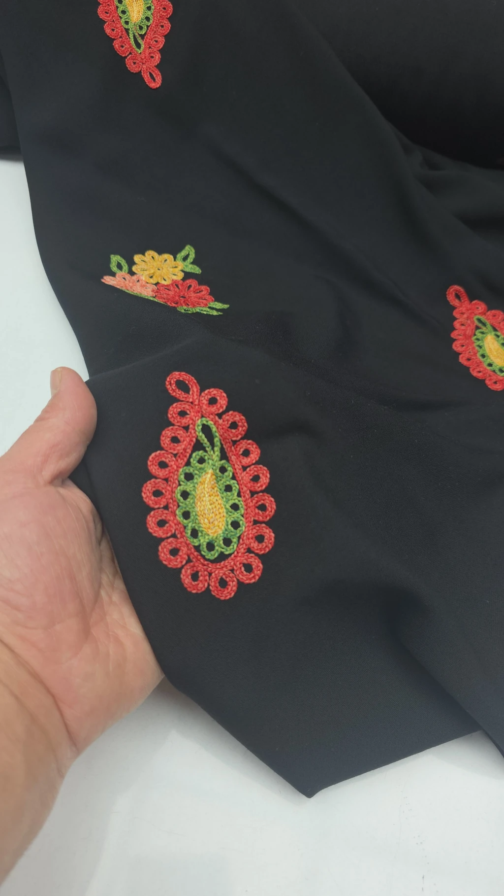 Dökümüne hayran kalacağınız, nakışlarıyla göz dolduran viskon kumaşımız geldi! Dar eni (90 cm) sayesinde özellikle şalvar ve etek dikimlerinde harika sonuçlar veriyor. Hem yumuşacık hem de çok şık.