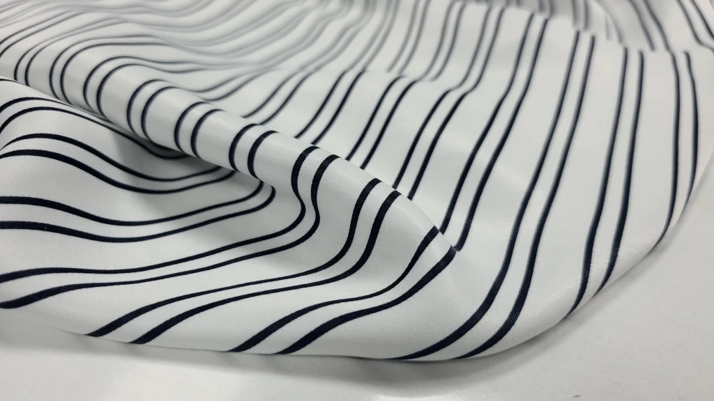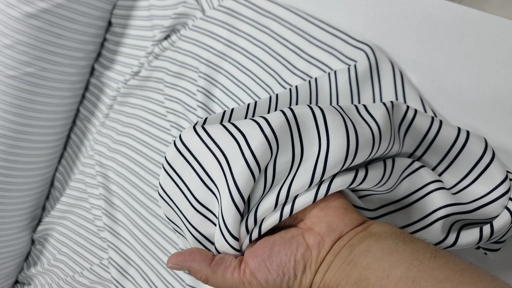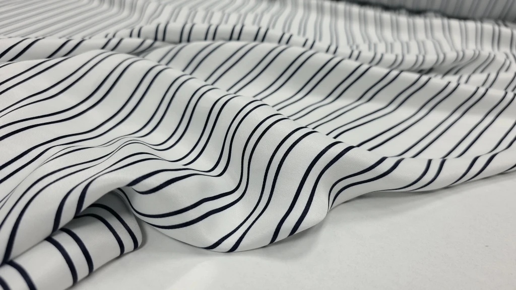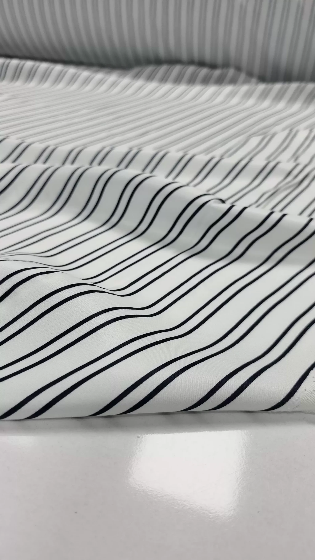 Zamansız Desen: Klasikleşmiş, ince siyah-beyaz çizgili deseniyle her zaman moda! Kumaşın esnekliği ve dökümü sayesinde çizgiler, kıyafetinize dinamik ve sanatsal bir hava katacak.
