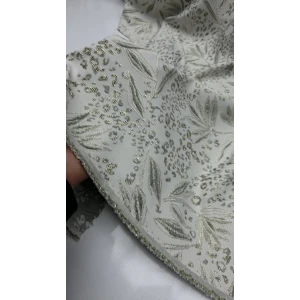 Ecru Kumaş Üzerine Ecru Pul Payet İthal Kadife