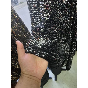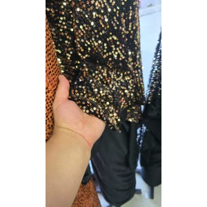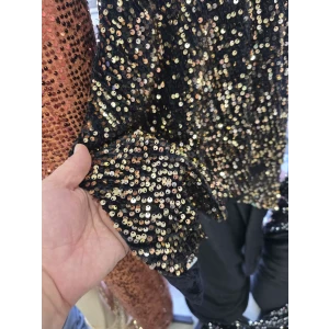 KADİFE PAYET Zemini Siyah Sarı Pullu