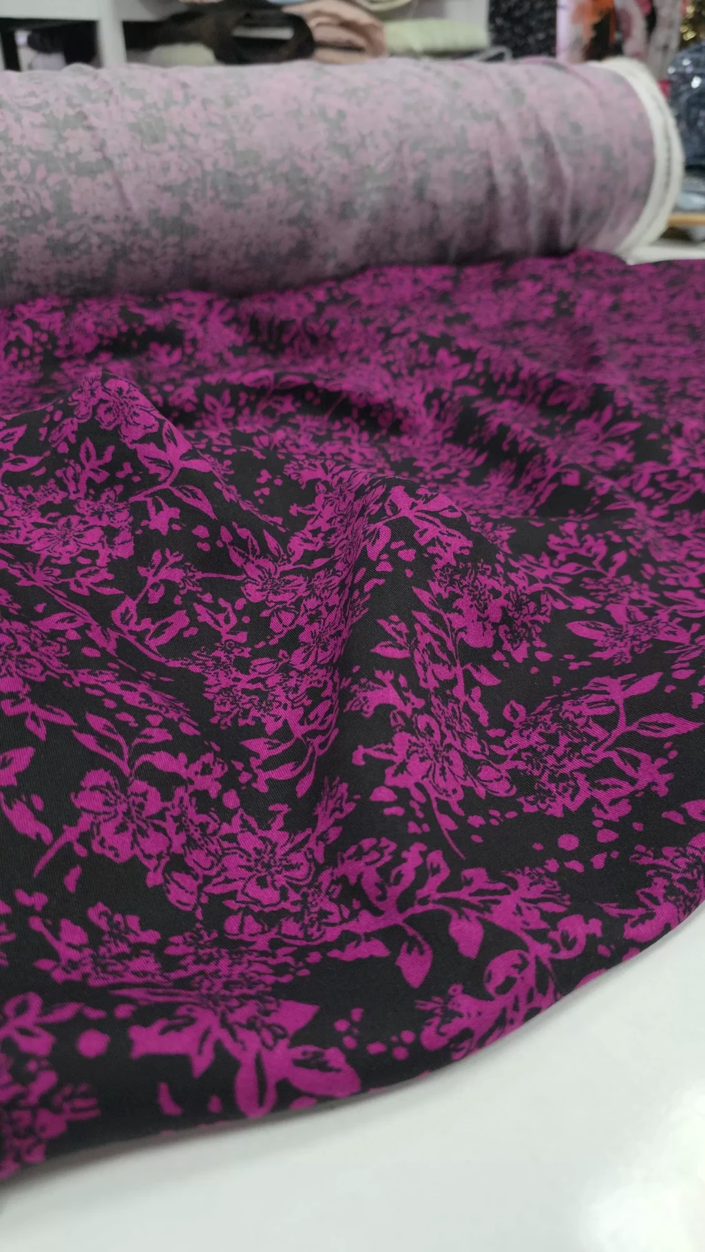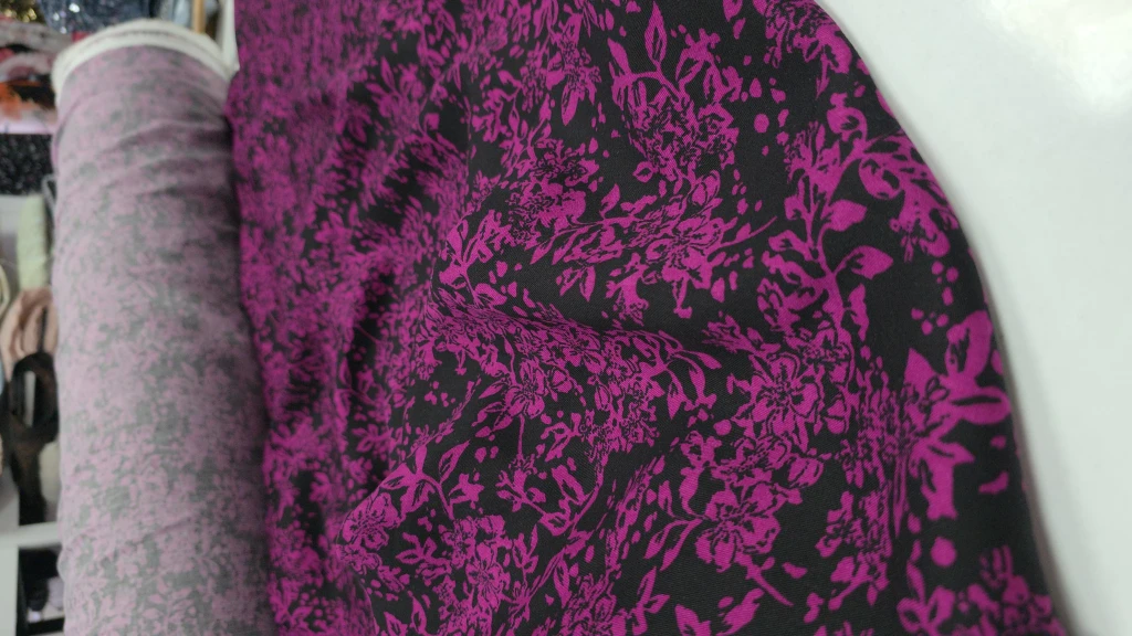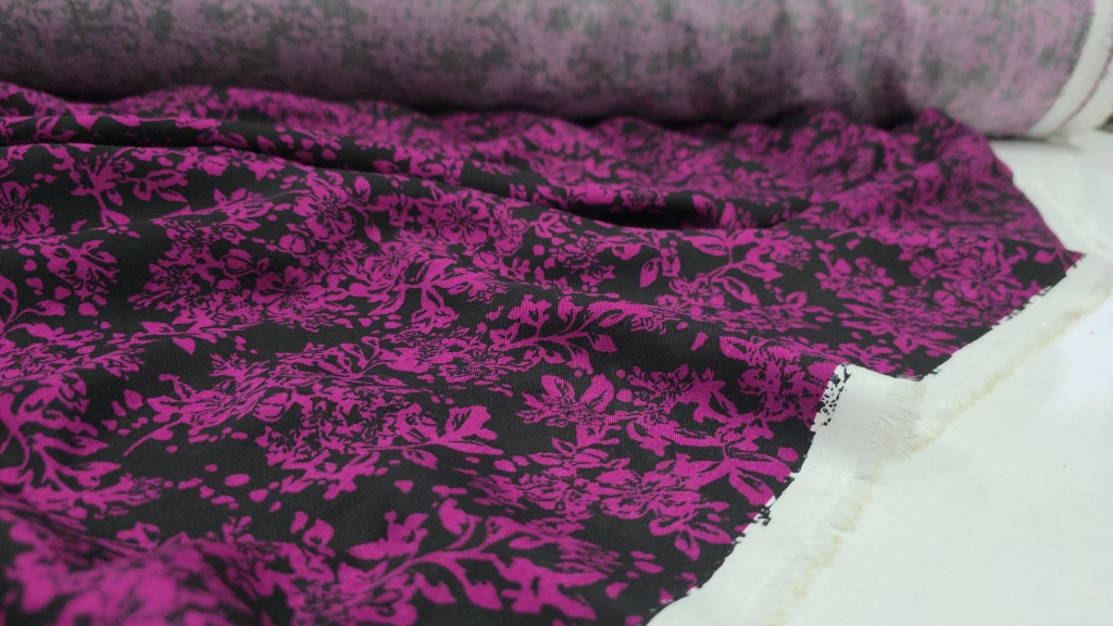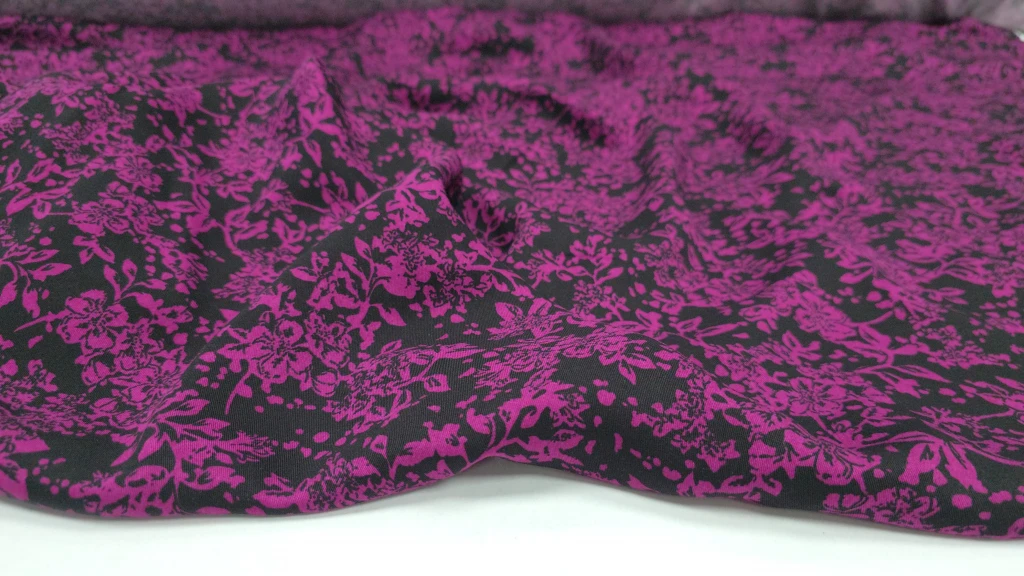 Siyah üzerine işlenmiş fuşya desenleri, bu kumaşı sıradanlıktan uzaklaştırıyor. 150 cm enindeki bu %100 EcoViskon kumaş, polyester ve naylon içermeyen doğal yapısıyla hem size hem de doğaya dost. Tamamen %100 EcoViskon içerir, bu sayede terletme yapmaz, hafiftir ve cilde dosttur.