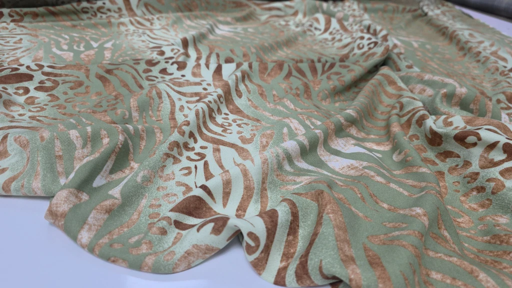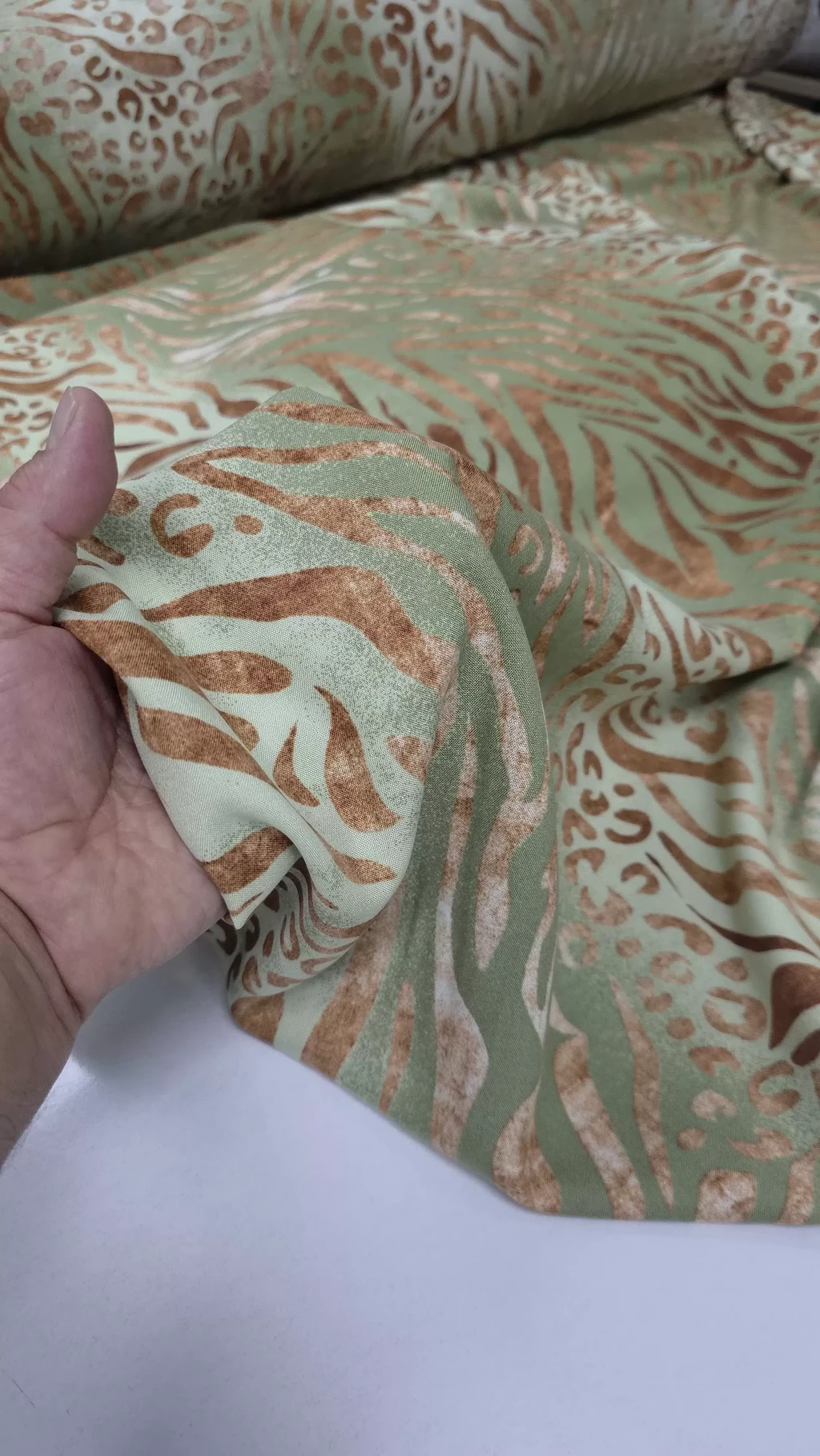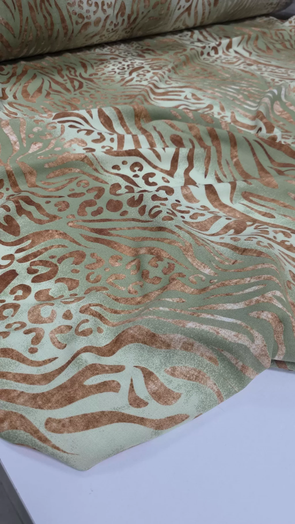 ?Trend pastel yeşil üzerine, kahve ve bronz tonlarında leopar ve zebra desenlerinin muhteşem birleşimi.