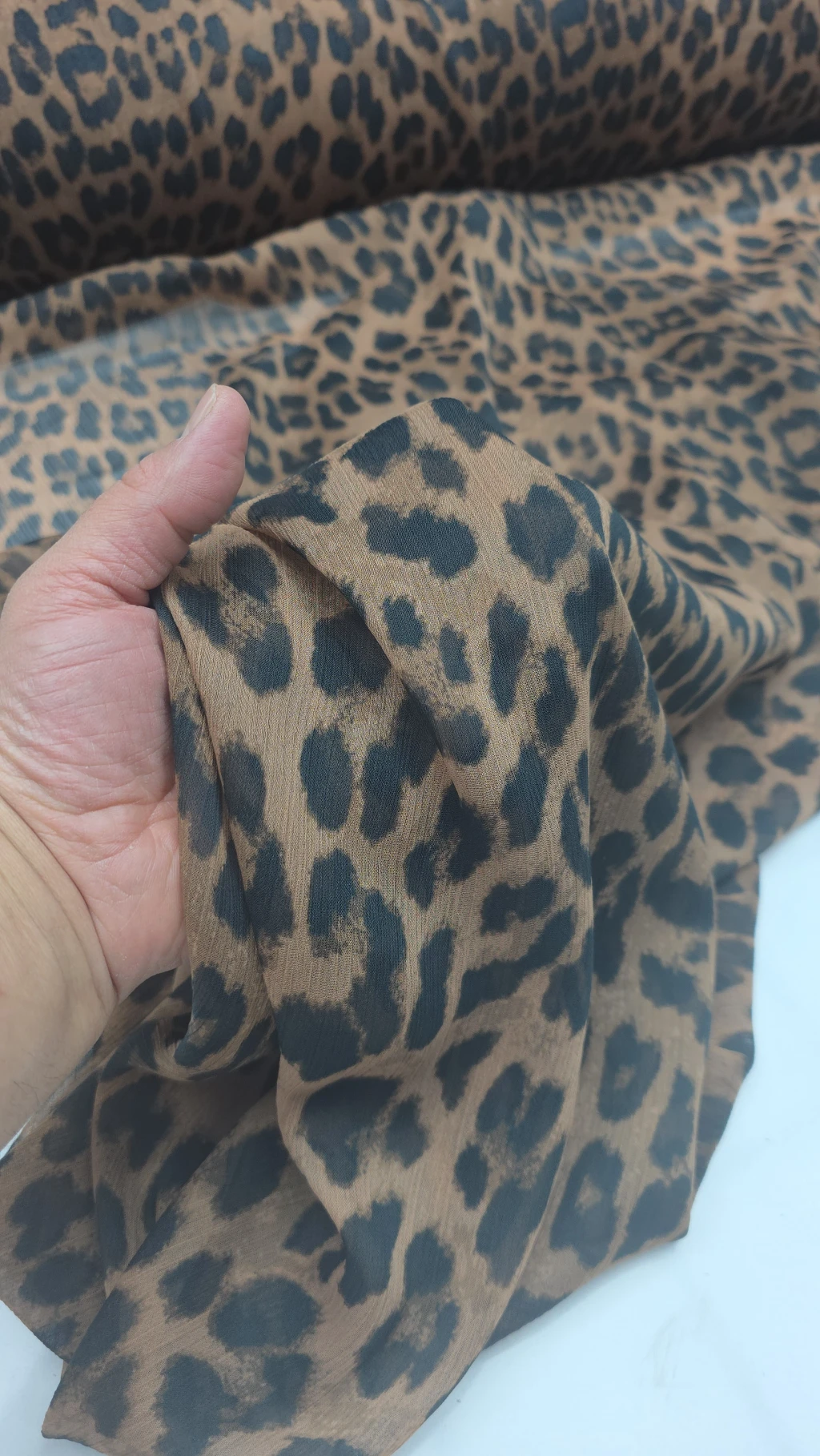 Dünyaca ünlü markaların koleksiyonlarında kullandığı bu özel doku; yumuşacık yapısı ve efeli dökümüyle sizi kendine hayran bırakacak. Klasikleşen leopar deseninin zarafeti, şifonun hafifliğiyle buluştu.